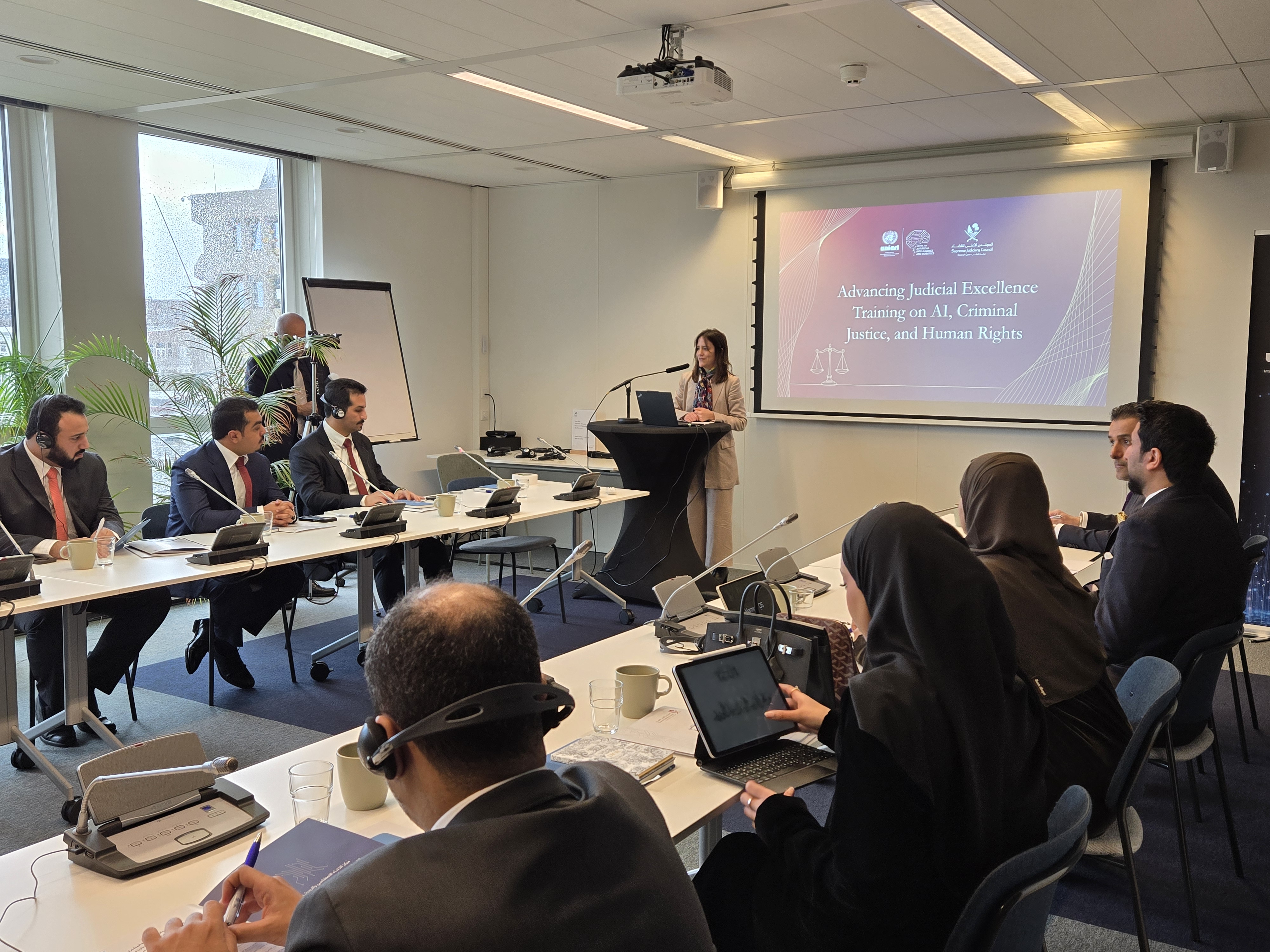 The initiative Advancing Judicial Excellence: Consultations and Mentoring in AI, Criminal Justice, and Human Rights for the Supreme Judiciary Council of the State of Qatar is a collaborative programme between the United Nations Interregional Crime and Justice Research Institute (UNICRI) through its Centre for AI and Robotics and the Supreme Judiciary Council of the State of Qatar. Anchored in the expertise of the AI Centre, the project supports the State of Qatar’s judiciary in strengthening its capacity to navigate the evolving intersection of artificial intelligence (AI), criminal justice, and human rights and to responsibly engage with AI within the criminal justice system. This is achieved through a series of specialized, in-person training sessions for Qatari criminal court judges, held in The Hague, The Netherlands.